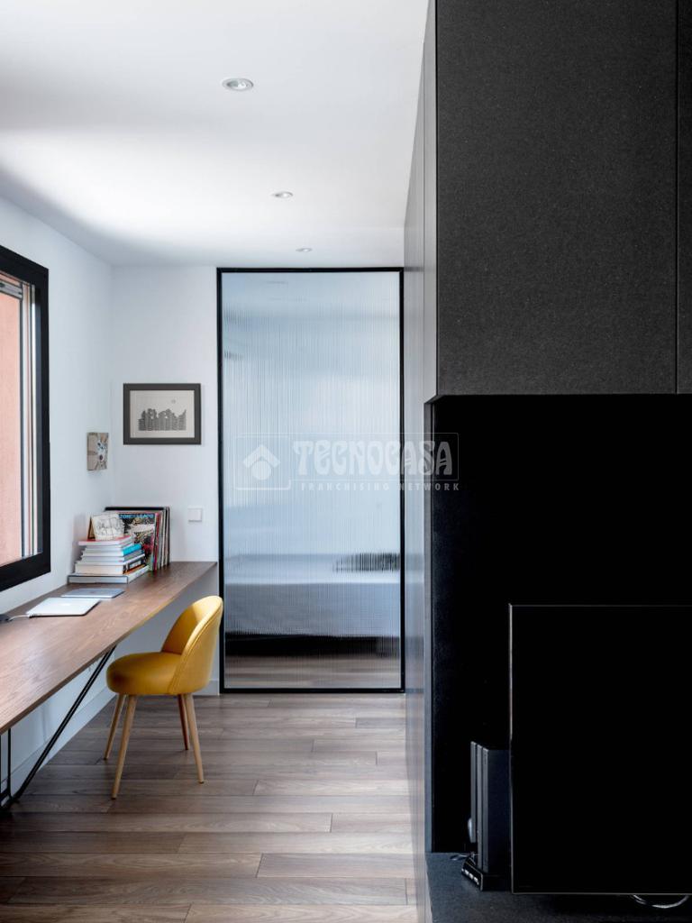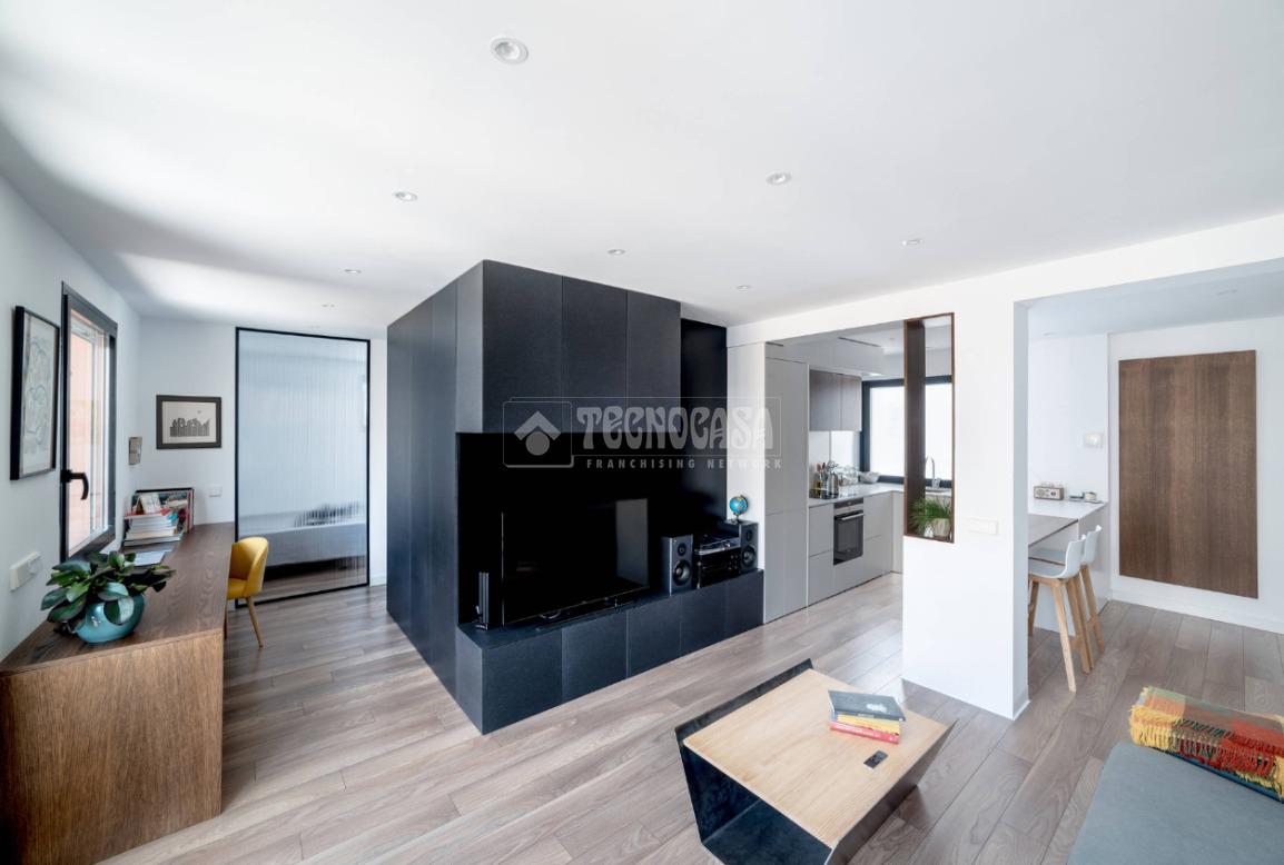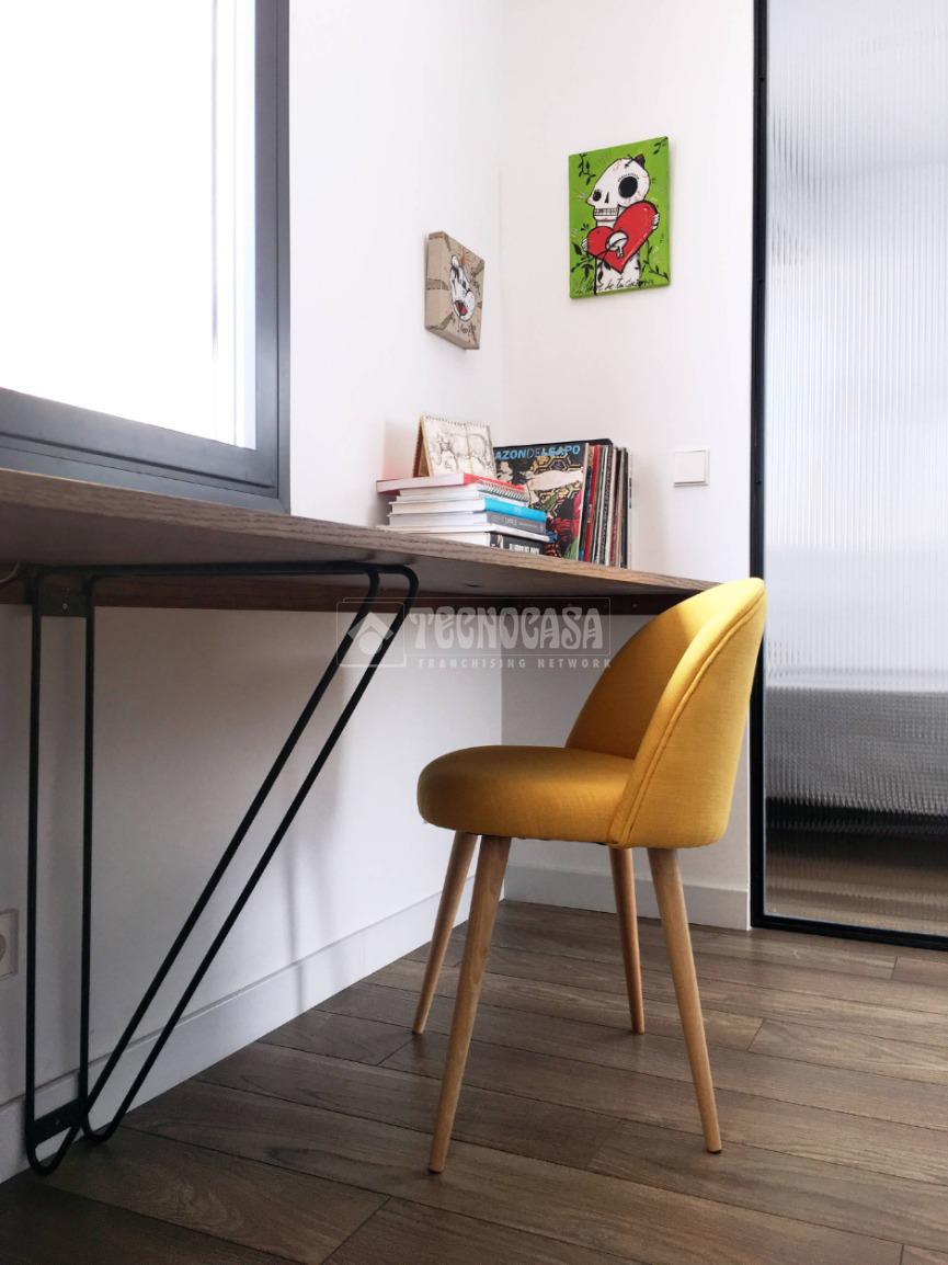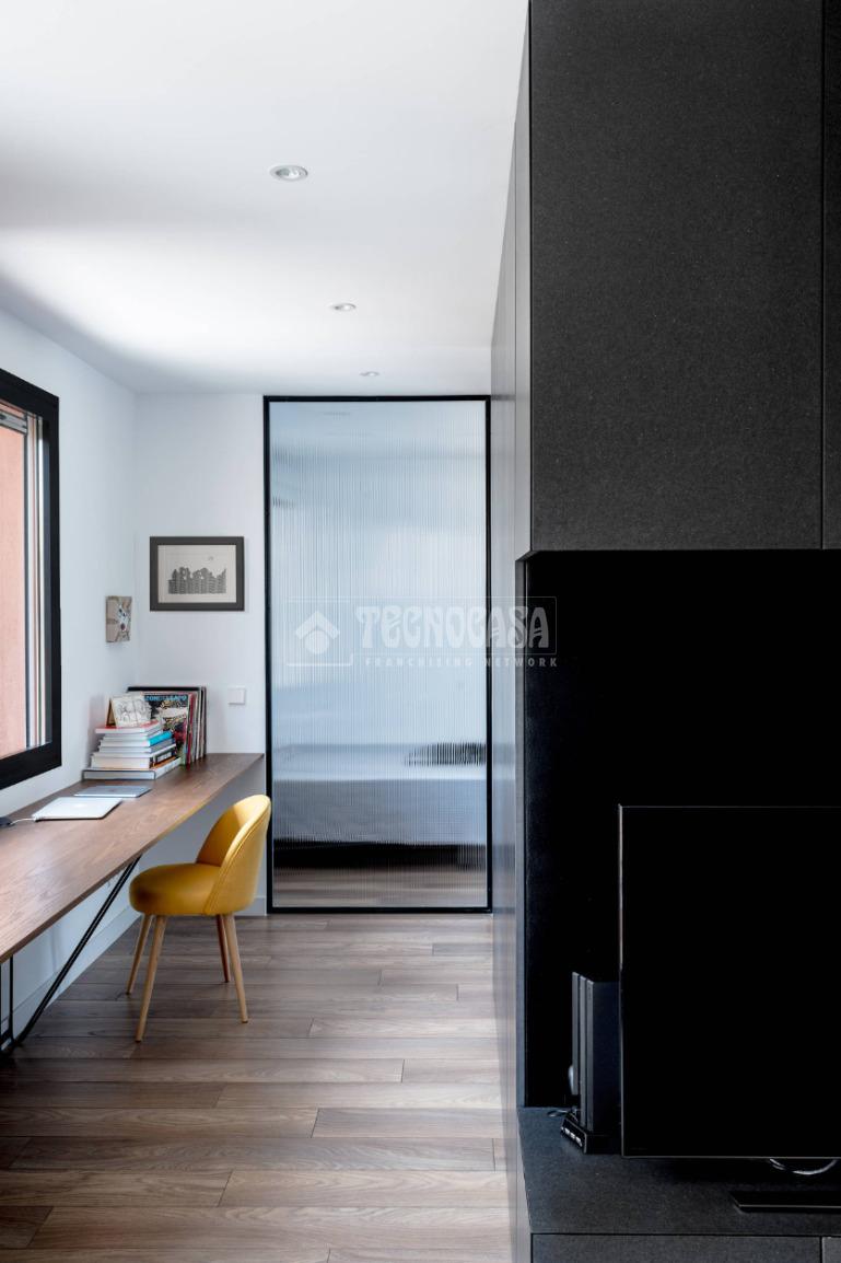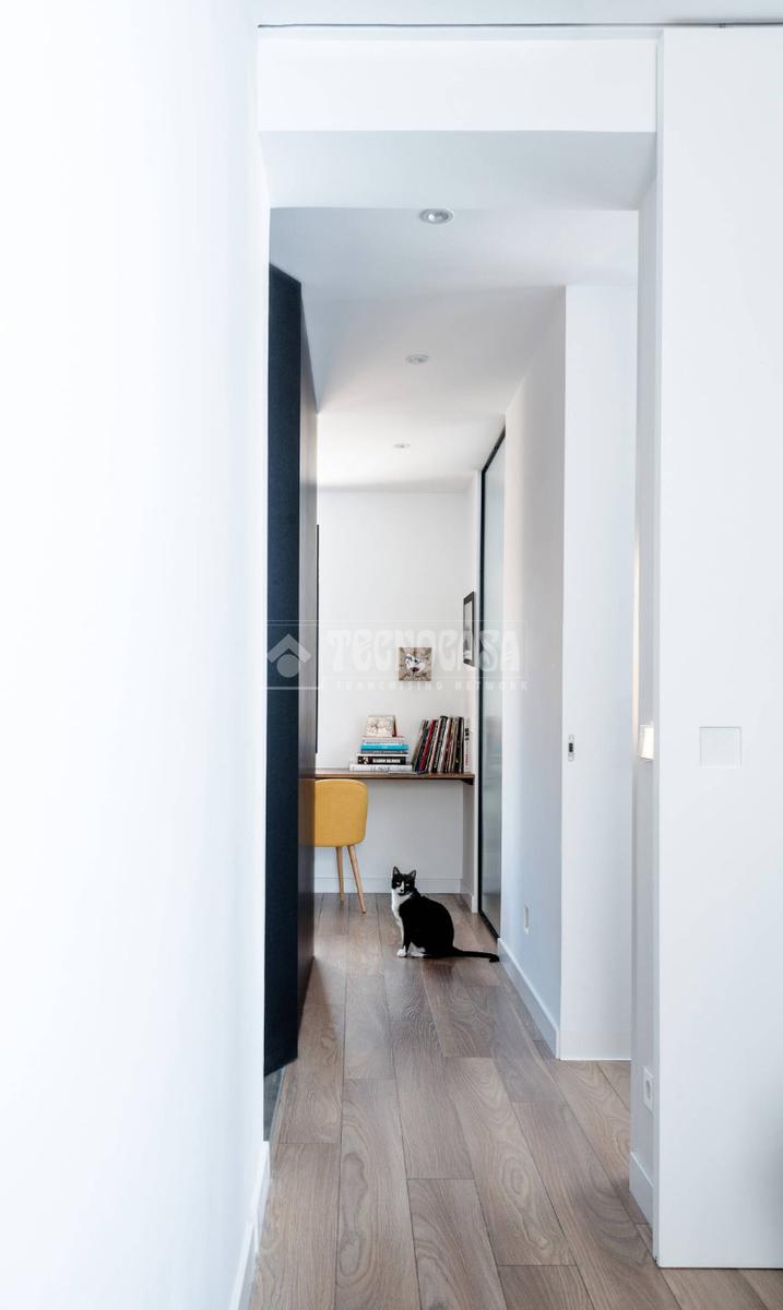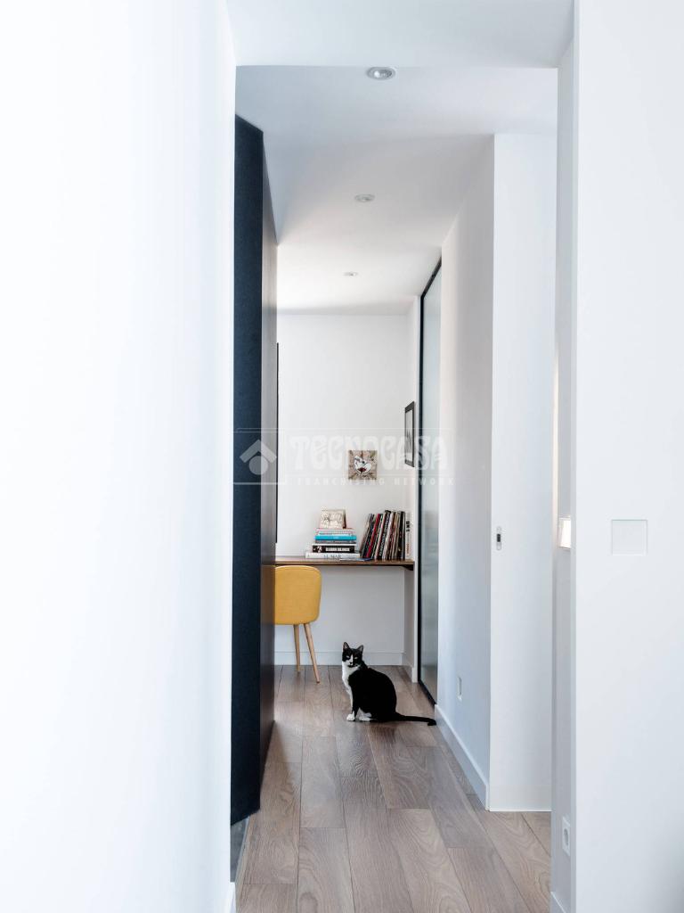 El salón, con salida al balcón exterior, es un espacio acogedor, lleno de vida y con una atmósfera relajada. A su lado, una zona de trabajo perfectamente integrada permite disfrutar de un rincón de lectura, estudio o teletrabajo sin romper la armonía del conjunto.