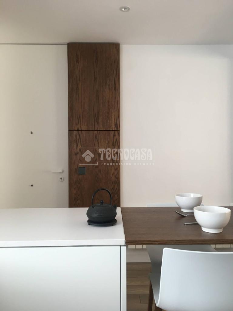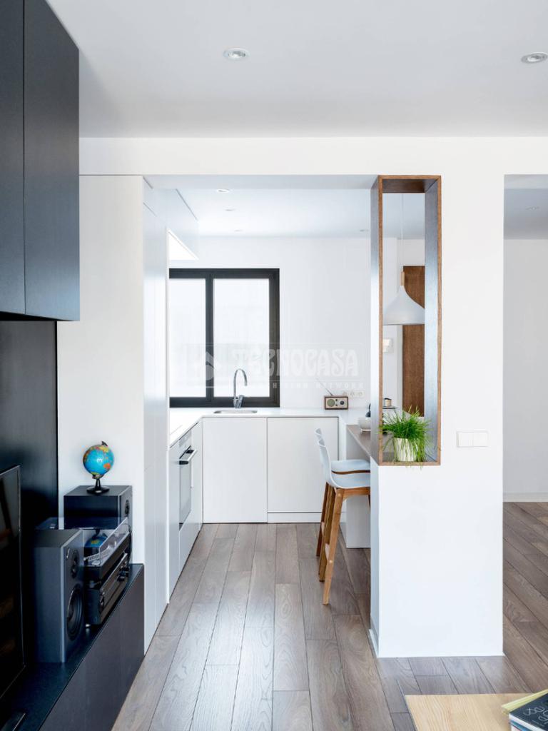 La zona principal integra salón, comedor y cocina abierta, creando un ambiente amplio, funcional y visualmente conectado. Los tonos neutros, la madera y la luz que entra a raudales a través de los ventanales hacen que la vivienda respire calma y estilo. La cocina, moderna y bien equipada, se abre al comedor con una mesa integrada que aporta continuidad al conjunto, perfecta tanto para el día a día como para recibir.